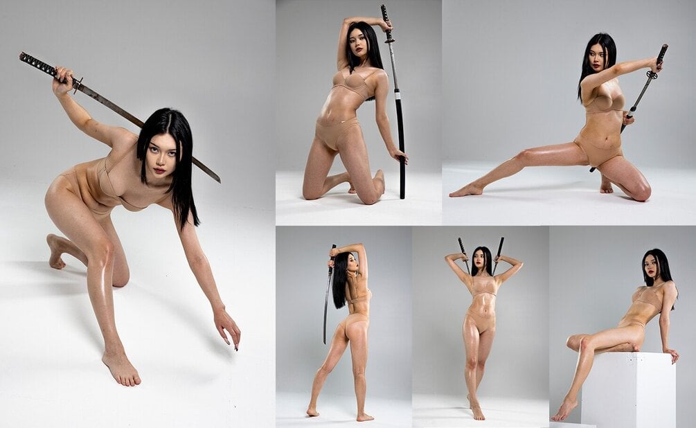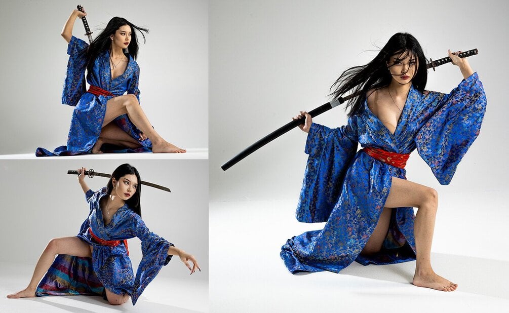 Reference photos with Asian girl character in kimono + poses without clothing for drawingÂ
