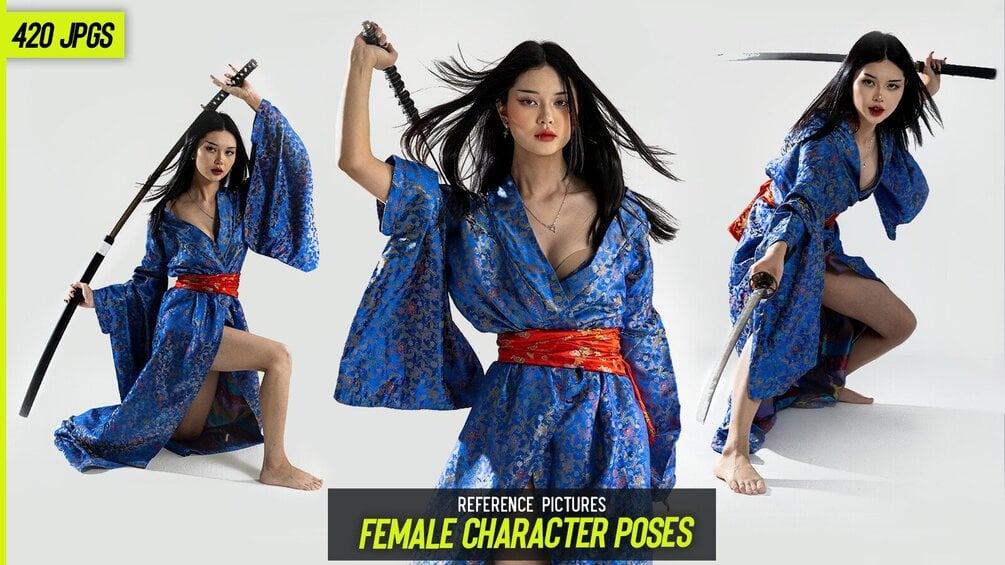 Female Character Poses (Kimono, Swordplay, Fighting)