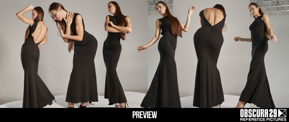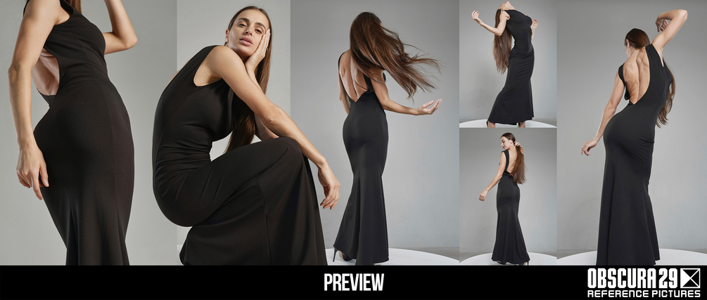 The set features a confident female model in a mix of strong, dynamic stances, elegant movements, and stylized weapon poses. Every photo highlights clear anatomy, expressive body language, and a sense of story — from quiet confidence to fierce motion. The result is a perfect reference source for artists exploring heroic, stylish, or narrative-driven female characters.